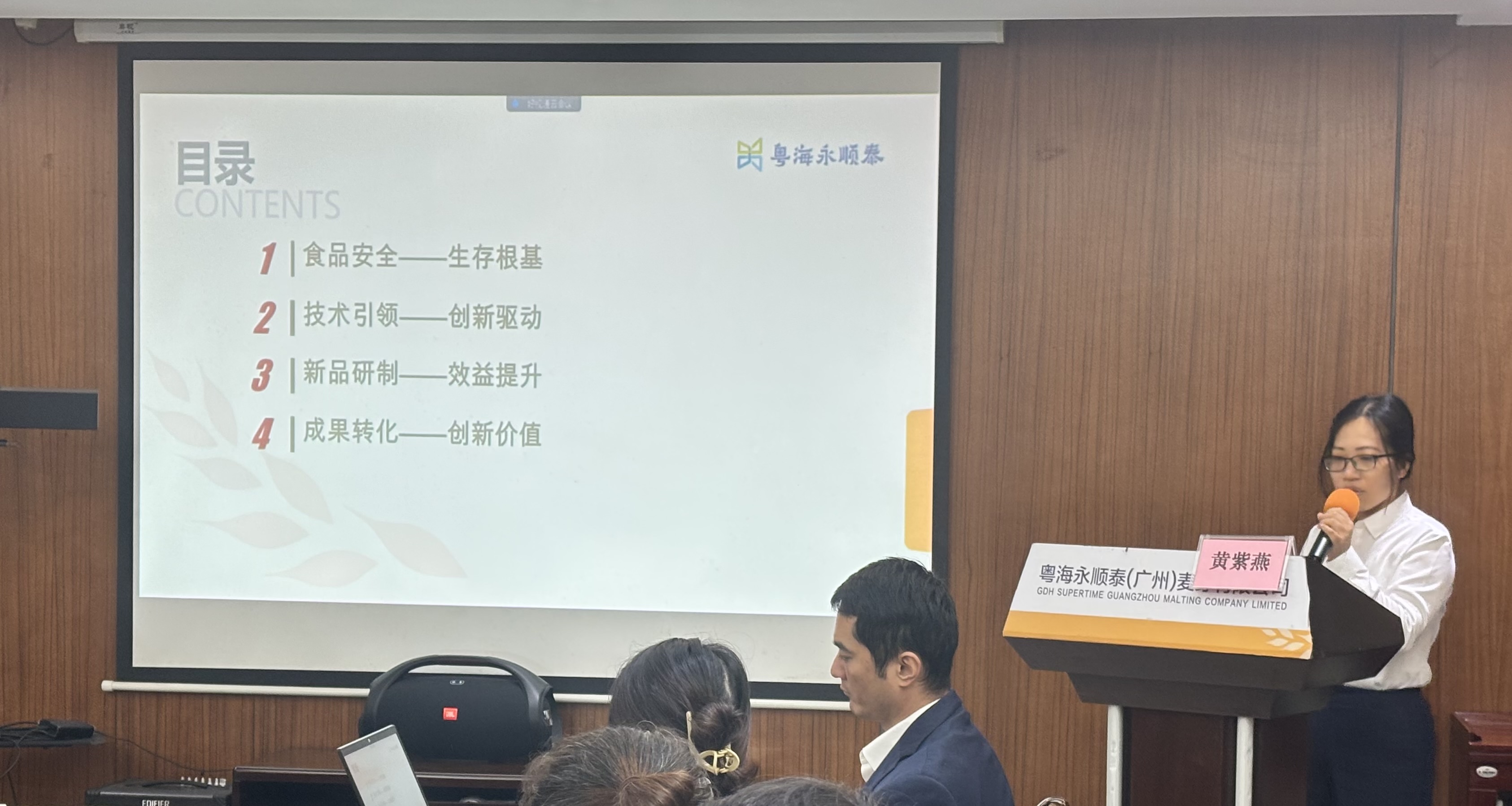 在热烈的掌声中,黄紫燕以自身经历分享了华体会(中国)麦芽创新团队的奋斗故事。她介绍,团队始终围绕“食品安全、技术引领、新品研制、成果转化”四大核心发力:在食品安全领域,针对麦芽中极微量有害物质检测难题,其所在的攻关团队率先在国内建立相关检测能力,构建“人机料法环测”全流程质量管理体系,实验室获CNAS国家认可;在技术引领方面,面对原料供应波动、生产工艺复杂等行业挑战,通过40余轮酿造测试精准把控麦芽指标,研发团队在中国顶级精酿啤酒赛事中斩获4次星级奖,其中“琥珀拉格”获最高“四星奖”;针对行业“卡脖子”难题,通过“一厂一策”定制方案,将波动的指标转化为可量化参数,攻克技术难关;在新品研制上,敏锐捕捉威士忌麦芽国产化机遇,攻克技术壁垒与信息封锁,团队成功开发了系列威士忌麦芽产品;在成果转化方面,团队近四年获4项发明专利、1项实用新型专利,参与多项国家标准制订,助力公司获高新技术企业、“专精特新”企业认证及行业科技进步奖。